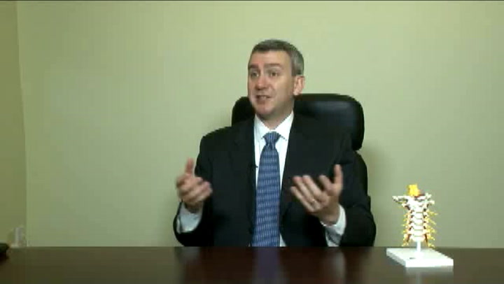 Now, the more definitive treatment of cervical facet joint arthropathy and cervical facet joint pain is something called radiofrequency rhizotomy, which is basically putting a needle, under an x-ray, next to the medial branch of the dorsal ramus - another way of saying the little sensory nerve that innervates the joint - and by using radiofrequency energy, you can actually deinnervate the joint. So, it's like the phone is still ringing, but you cut the cord so you don't hear it. The facet joint may still be arthritic It may still have a tear in the capsule. It may still be causing pain were there a sensory nerve, but since there is no sensory nerve, you don't feel that pain. That nerve tends to regenerate and over a period of six to eighteen months - typically around a year - the nerve will tend to grow back and the pain will tend to return and then you have to do it again. So, ideally, even when you do a cervical facet joint rhizotomy, you still think of that more as a window of opportunity during which you should still really be focused on posture and exercises to help unload so that, hopefully, as that nerve regenerates (should it regenerate), the biomechanics have shifted enough so that the pain doesn't return and the procedure doesn't have to be repeated.