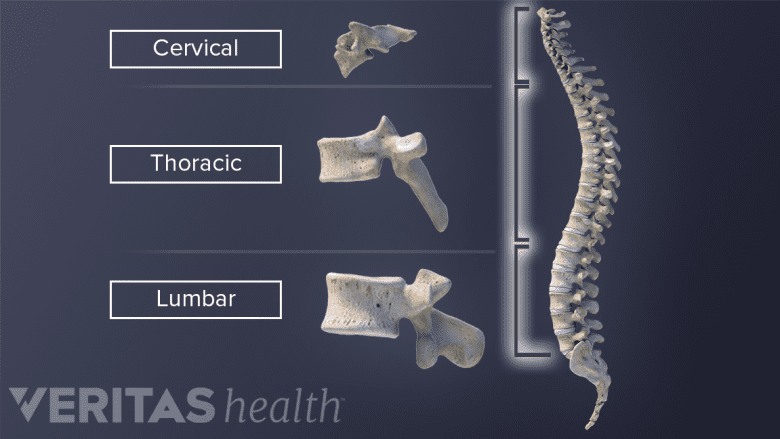 Cada zona de la columna vertebral presenta algunas diferencias en la forma y función de los cuerpos vertebrales y en cómo están unidos a las estructuras adyacentes, como se indica a continuación: