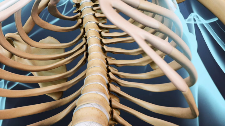 In the thoracic spine, or upper back, there are eleven spongy discs positioned between the bony vertebrae.